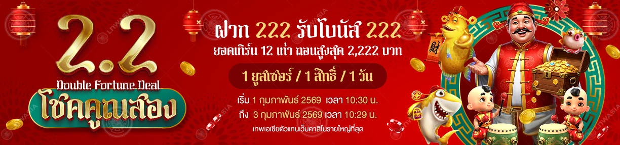 เพียงฝาก 222 บาท รับโบนัส 222 บาท ถอนได้สูงสุด 2,222 บาท เทิร์นโอเวอร์ 12 เท่า สมาชิก 1 ยูสเซอร์ รับ 1 สิทธิ์ต่อ 1 วัน เฉพาะเกมสล็อตและยิงปลาจีคลับ โปรโมชั่นพิเศษช่วงเทศกาลตรุษจีนและ 2.2 นี้เท่านั้น ระยะเวลาเริ่มตั้งแต่ 28 มกราคม 2568 เวลา 10:30 น. ถึง 3 กุมภาพันธ์ 2568 เวลา 10:29 น. วิธีรับโบนัส สมาชิกจะต้องฝากเงินยอด 222 บาทเท่านั้น และมีสิทธิ์ได้รับโบนัสเพิ่ม 222 บาททันที สมาชิกจะต้องแจ้งขอรับโบนัสพร้อมเติมเงินกับเจ้าหน้าที่ฝ่ายบริการลูกค้า ได้ที่ทางไลน์ หรือแชทสด 1 ยูสเซอร์ สามารถรับได้ 1 สิทธิ์ต่อวันเท่านั้น (ตัดรอบ 10:30 […]