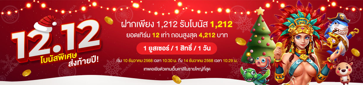 12.12 ห้ามพลาด! ฝากเพียง 1,212 บาท รับโบนัสอีก 1,212 บาท! โบนัสพิเศษมอบให้เฉพาะสมาชิกเทพเอเชีย ยอดเทิร์นโอเวอร์เพียง 12 เท่า ถอนได้สูงสุด 4,212 บาท สมาชิก 1 ยูสเซอร์ รับ 1 สิทธิ์ต่อ 1 วัน เฉพาะเกมสล็อตและยิงปลาจีคลับ ระยะเวลาเริ่มโปรโมชั่น ตั้งแต่ 10 ธันวาคม 2568 เวลา 10:30 น. ถึง 14 ธันวาคม 2568 เวลา 10:29 น. วิธีรับโบนัส สมาชิกจะต้องฝากเงินยอด 1,212 บาทเท่านั้น และมีสิทธิ์ได้รับโบนัสเพิ่ม 1,212 บาททันที สมาชิกจะต้องแจ้งขอรับโบนัสพร้อมเติมเงินกับเจ้าหน้าที่ฝ่ายบริการลูกค้า ได้ที่ทางไลน์ หรือแชทสด 1 ยูสเซอร์ สามารถรับได้ 1 สิทธิ์ต่อวันเท่านั้น (ตัดรอบ […]